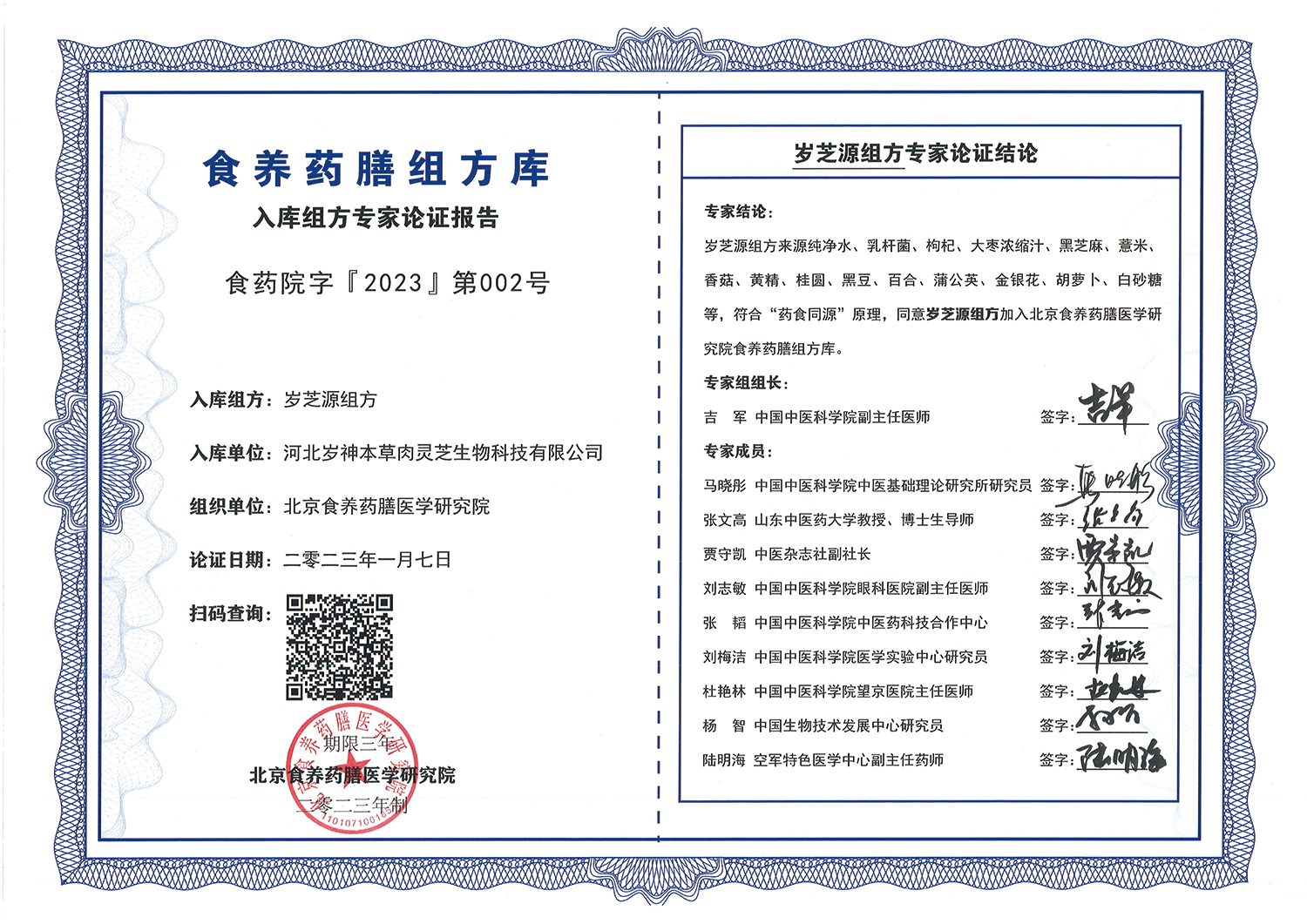 入库单位: 河北岁神本草肉灵芝生物科技有限公司